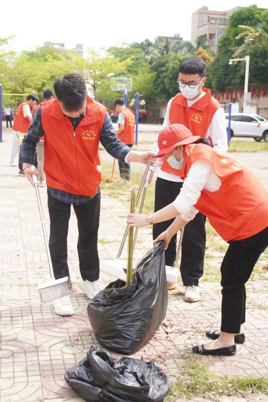 青年志愿者们身着红色志愿服,按照提前划分好的小组,各自开展了志愿活动。