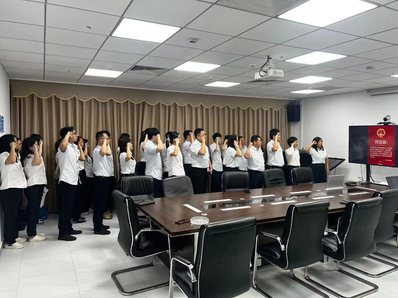 全体干部职工列队肃立,高举右拳,庄严宣誓。一句句铿锵有力的誓言回荡激扬,表达了对宪法的敬畏和尊崇。